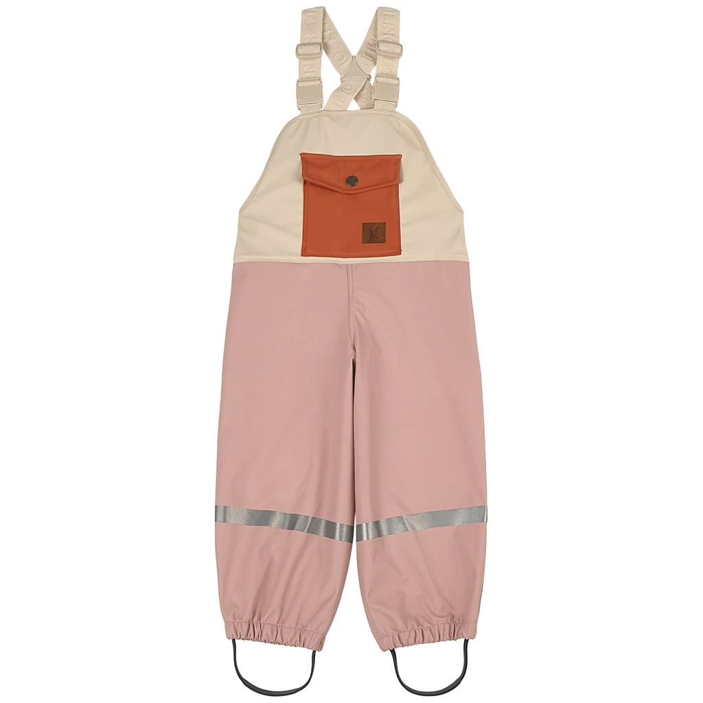 Rainy days won’t stand a chance. Pink Edinburgh rain trousers by Kuling. The trousers have welded seams. They have elasticated, adjustable shoulder straps, one front pocket, elasticated cuffs, adjustable silicone foot loops and reflective details for visibility.
