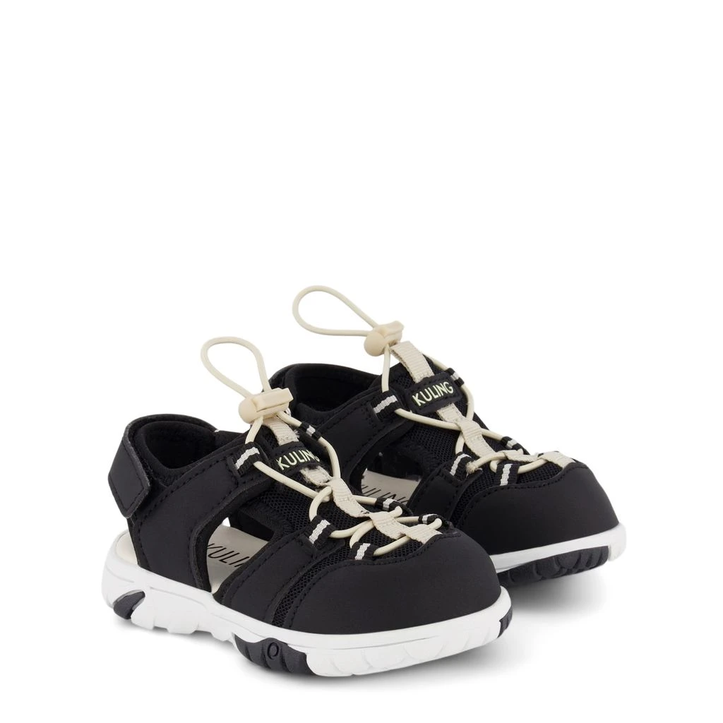 Fjällbacka sandals by Kuling. The sandals have a mesh upper. They have a velcro closure at the heel, closed toe, a drawstring at the front for a perfect fit, a cushioned insole and a non-slip sole.