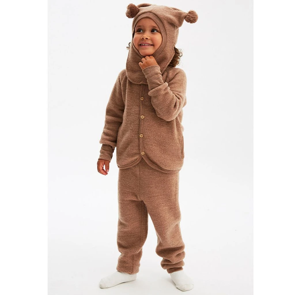 Keep little legs comfy. Brown fleece pant by Kuling. The fleece pant has an elasticated waist. It has ribbed, folded cuffs.