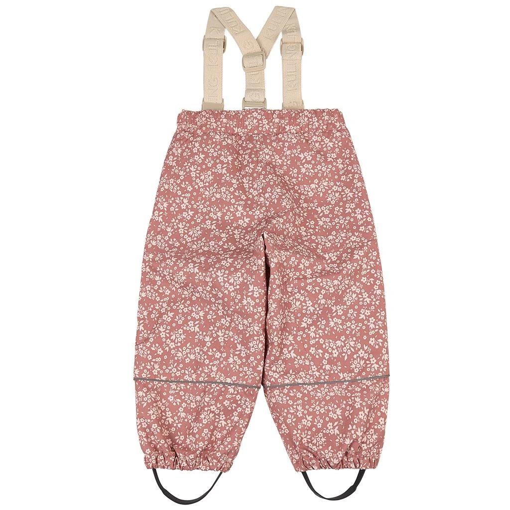 Get ready for outdoor adventures. Pink Going shell trousers by Kuling. The trousers have taped seams. They have adjustable, detachable shoulder straps, two front pockets, elasticated cuffs, adjustable, detachable silicone foot loops and reflective details for visibility.