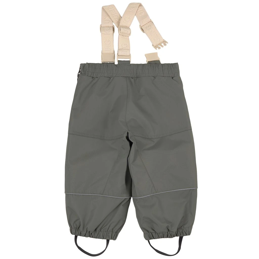 Get ready for outdoor adventures. Green Going shell trousers by Kuling. The trousers have taped seams. They have adjustable, detachable shoulder straps, two front pockets, elasticated cuffs, adjustable, detachable silicone foot loops and reflective details for visibility.
