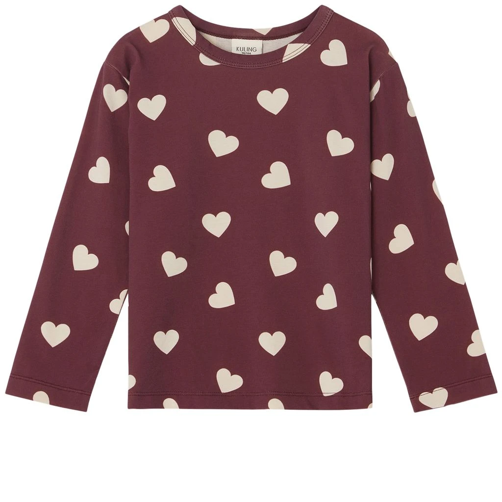 Get ready for play filled days. Red GOTS Athens T-Shirt by Kuling. The T-Shirt has a regular fit. It has an all-over print with hearts.