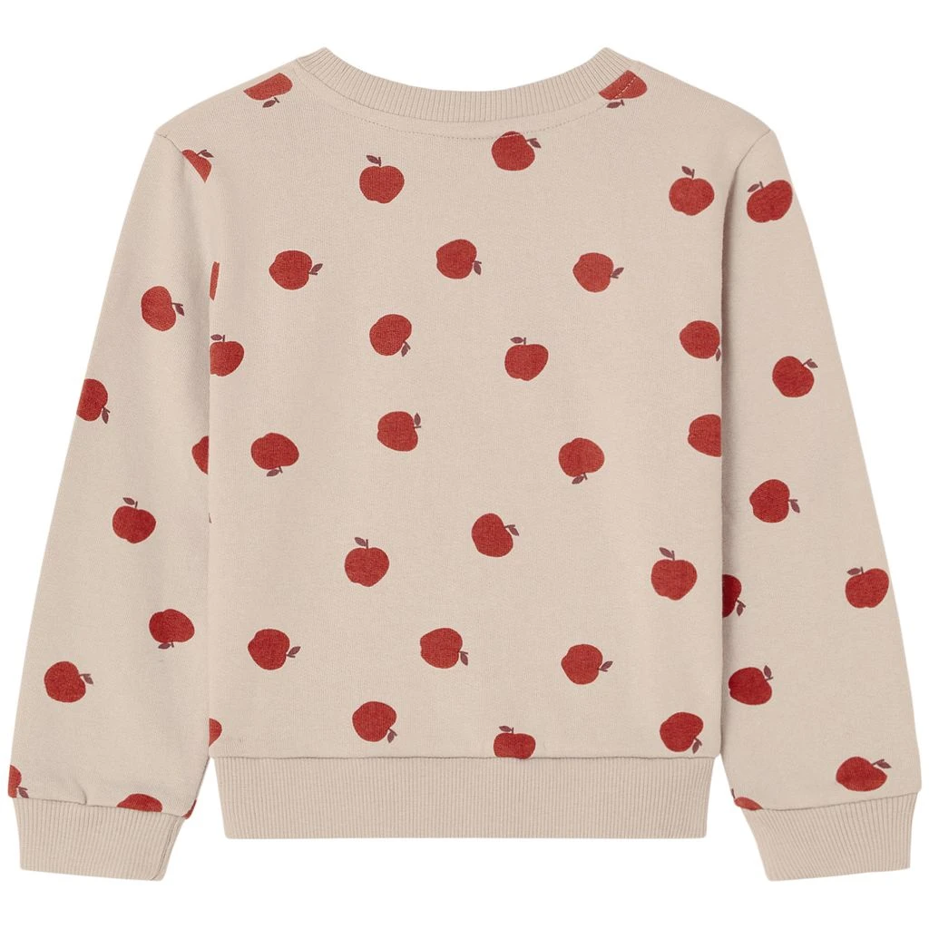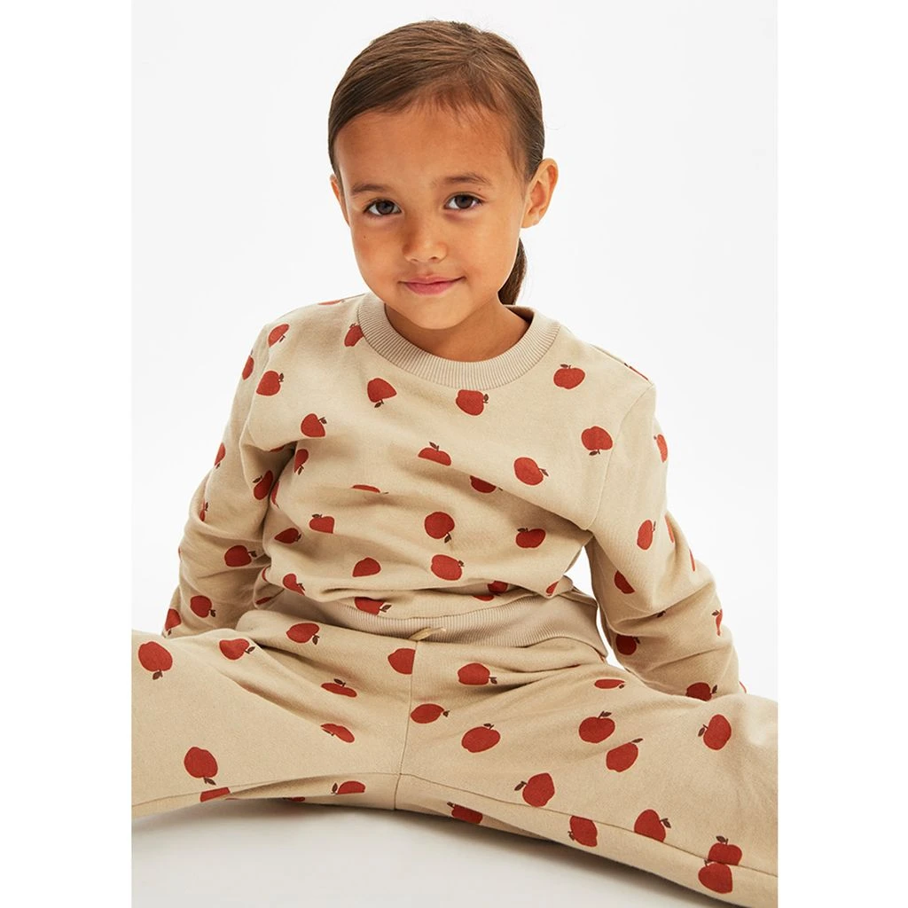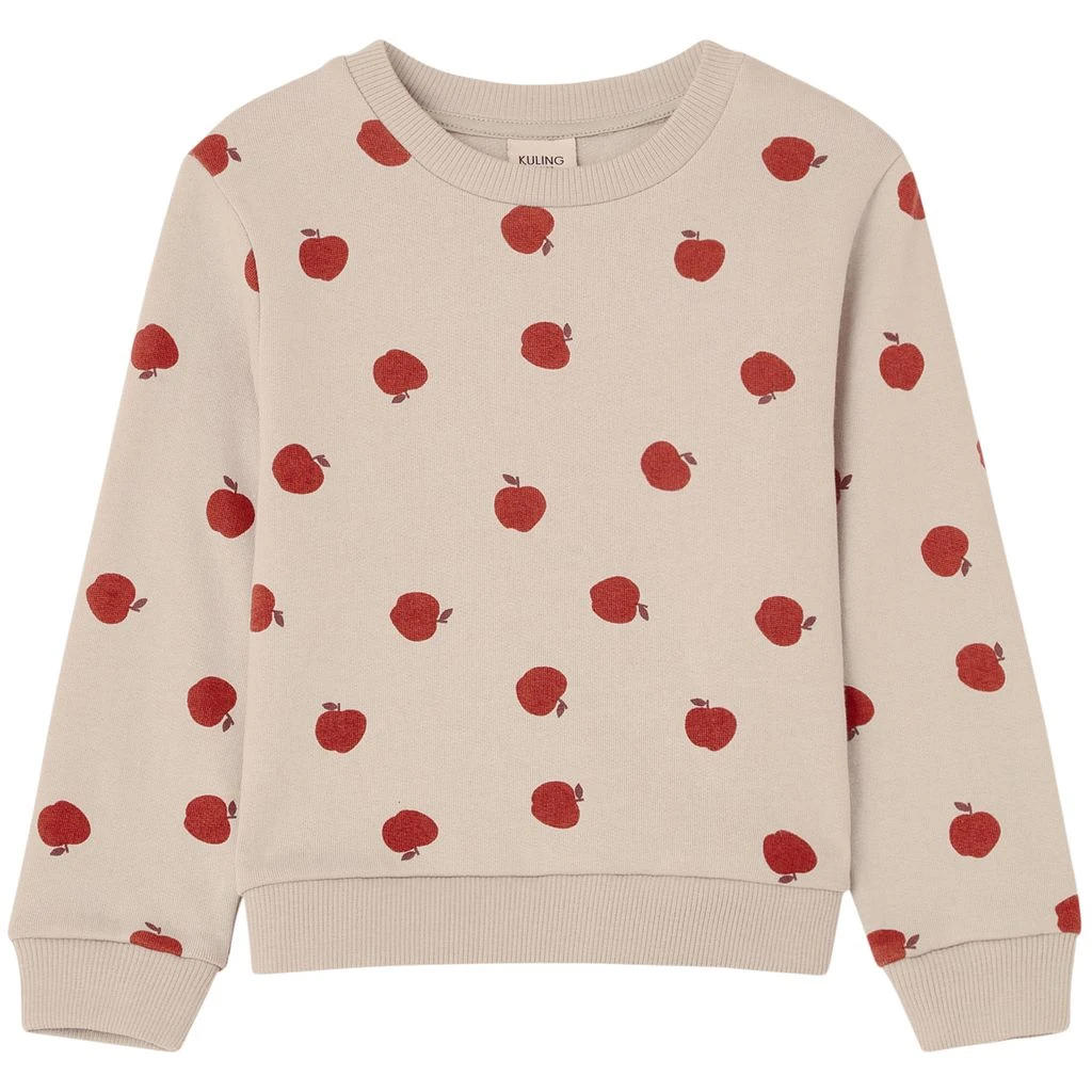 An on-trend and comfortable sweatshirt for everyday life. Beige GOTS Heraklion sweatshirt by Kuling. The sweatshirt has an all-over print with apples. It has a regular fit and ribbed cuffs.