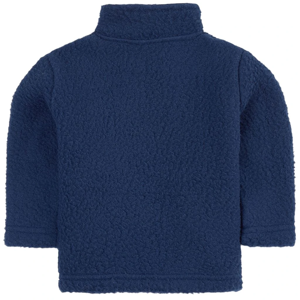 Navy Limited Edition Cherry Pile fleece jacket by Kuling. The jacket has a soft fleece material. It has a zip closure at the front, an embroidered cherry at the chest and two front pockets.
