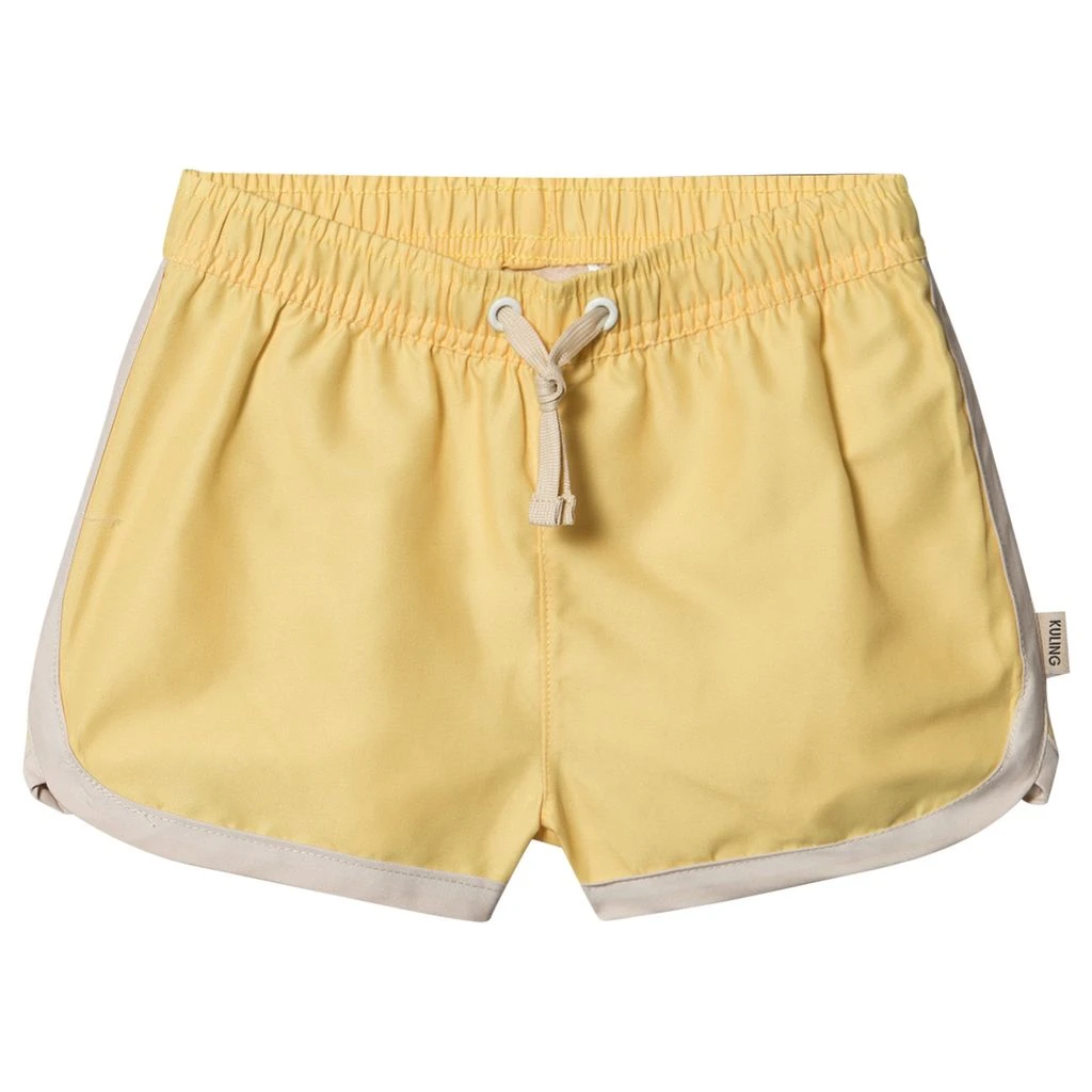 Add cheer to their swimwear with these swim shorts in sunny yellow by Kuling. Quick-drying, Oeko-Tex® certified and tested for harmful substances, they provide SPF 50+ sun protection and have an elasticated drawstring waist and mesh lining. Pair with the matching sun hat for playing and swimming on the beach or by the pool.