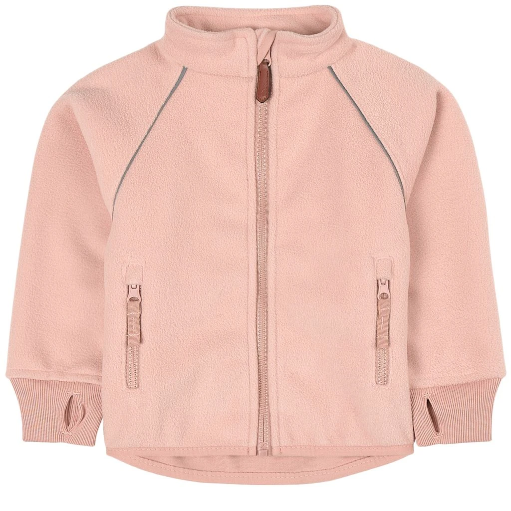 Pink Livigno Wind Fleece jacket by Kuling. The jacket has a zip closure at the front. It has two front pockets, ribbed cuffs with thumbholes and reflective details for visibility.