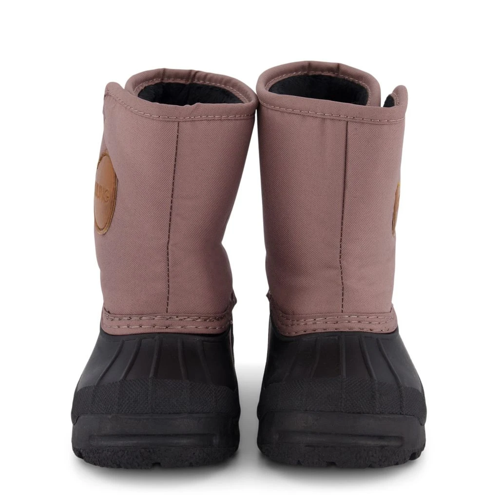 Lilac Minnesota winter boots by Kuling. The winter boots have padding for warmth. They have a velcro closure for easy on and off, a TPR sole with rough tread for a sure step and a reflective detail for visibility.