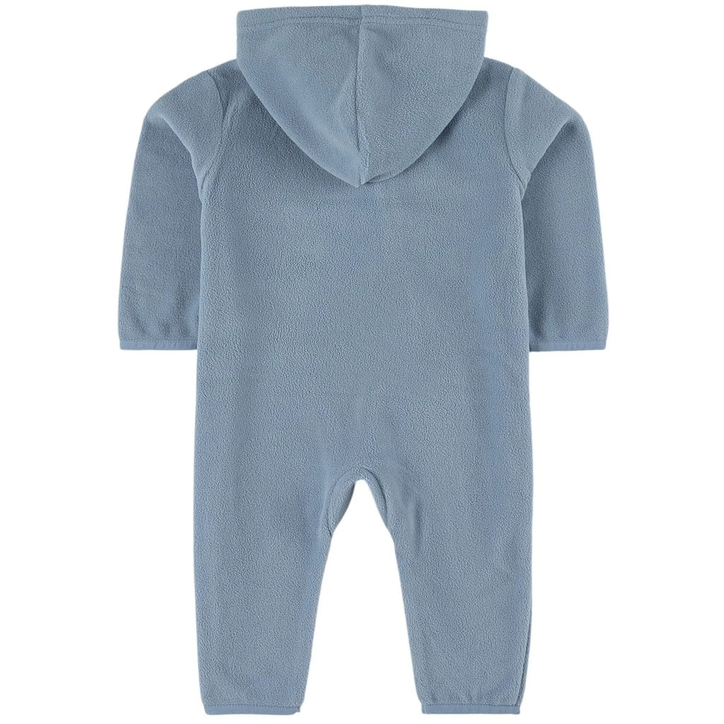 Northpole fleece onesie by Kuling. The fleece onesie has an asymmetrical zip closure with chin guard at the front. It has a logo applique at the front, elasticated cuffs and a fixed hood.