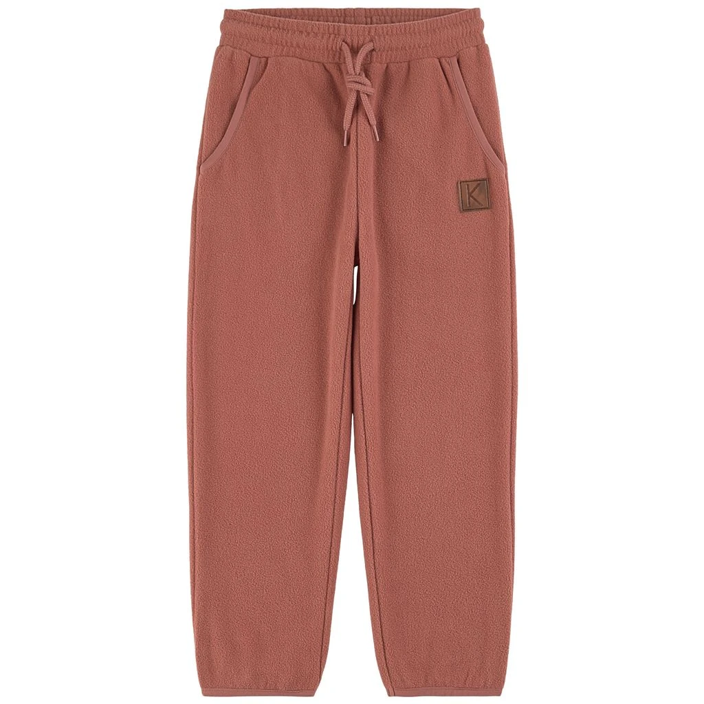 Keep warm with comfy fleece. Pink Northpole fleece pants by Kuling. The fleece pants have an elasticated drawstring waist. They have two front pockets.