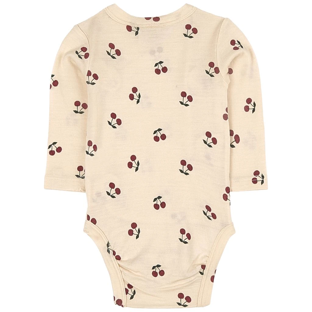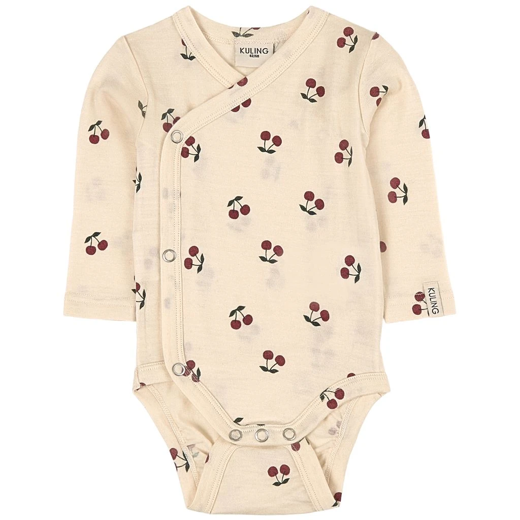 Let your baby explore and play in comfort. Cream baby body by Kuling. The baby body has a wrap front. It has snap buttons at the side and between the legs.