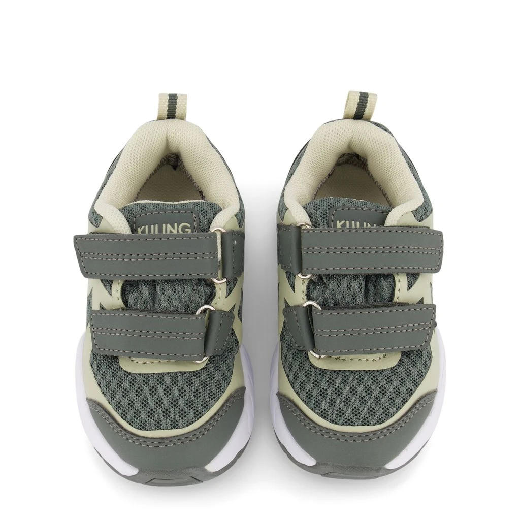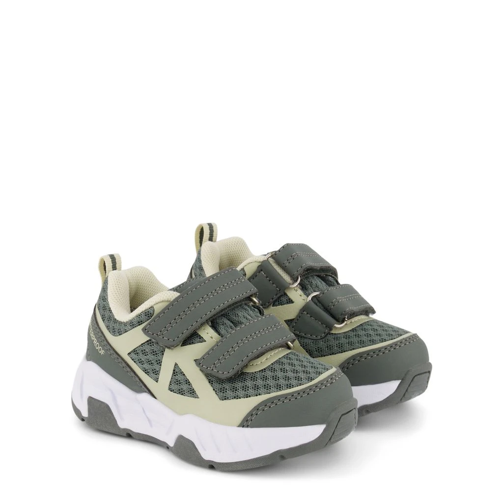 These sneakers are for adventurous kids!. Green Seattle trainers by Kuling. The trainers have a waterproof mesh upper. They have a padded collar, a velcro fastening for easy on and off, a pull-tab at the heel, a cushioned insole and a non-slip sole.