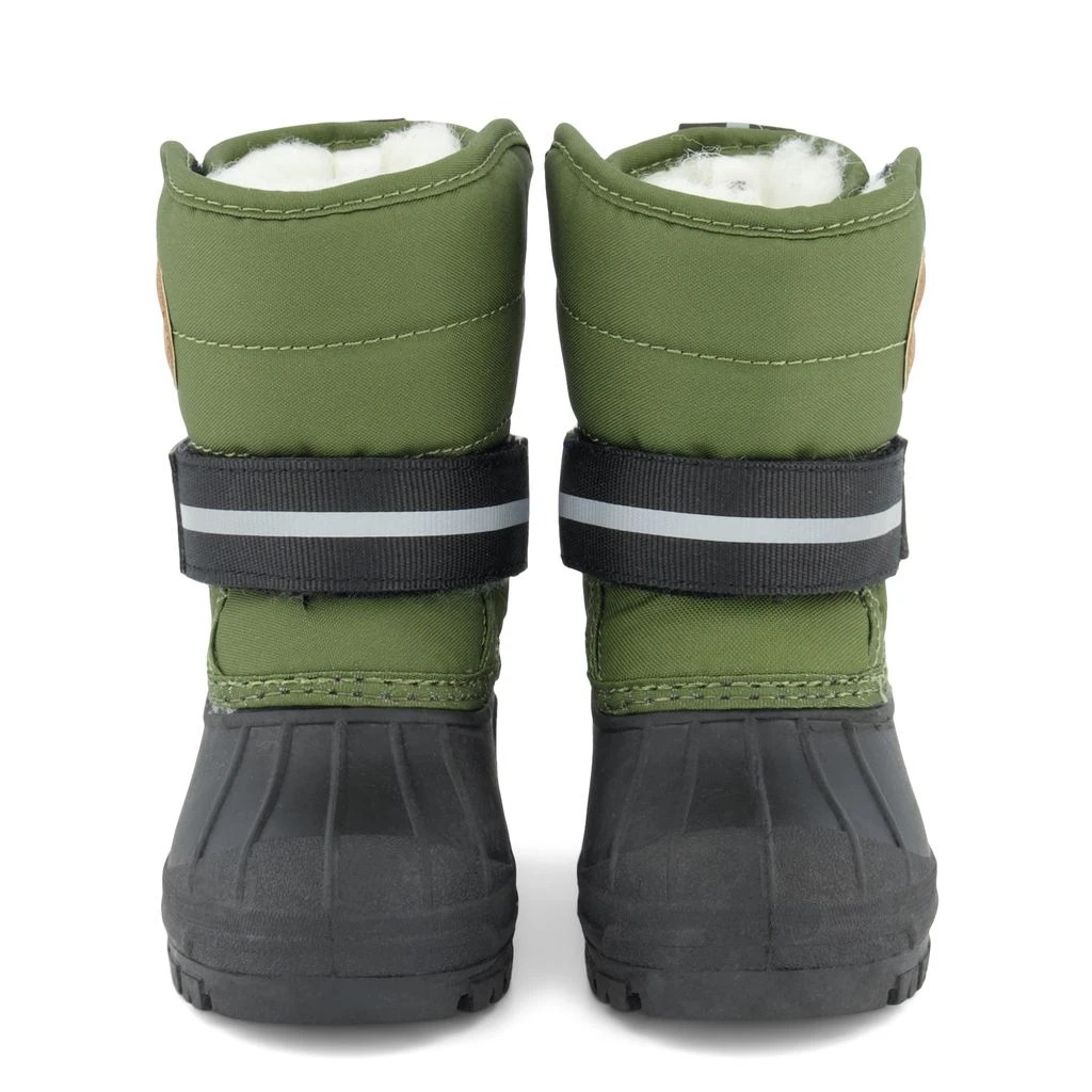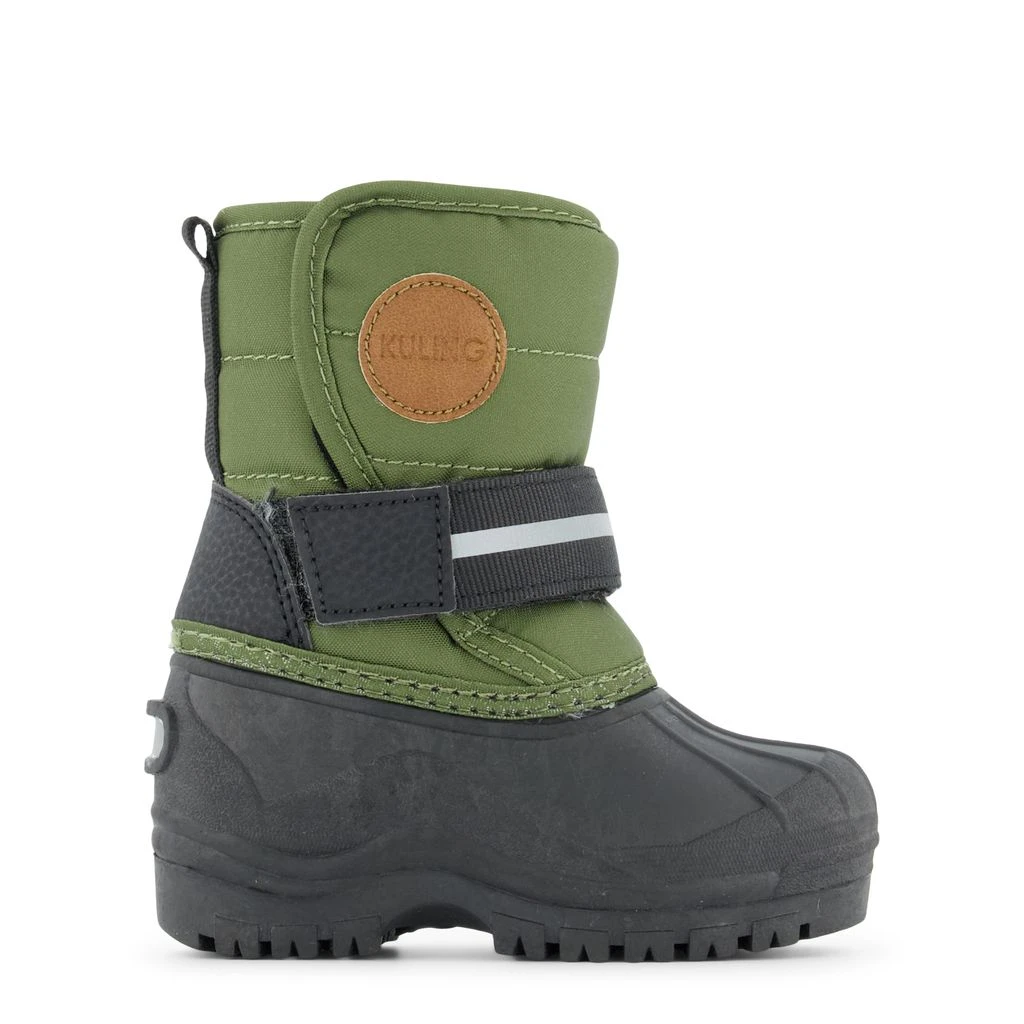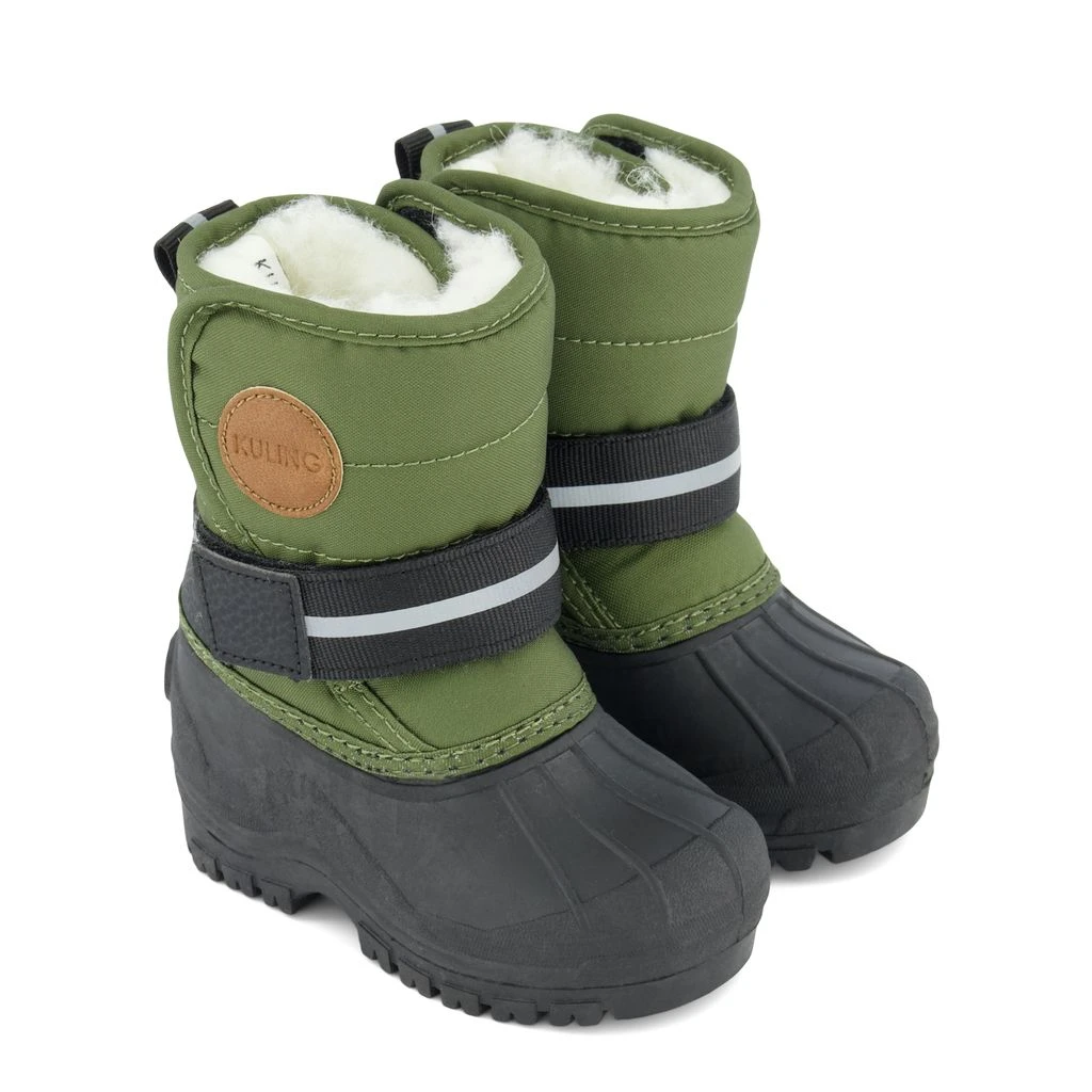 Let’s play in the snow!. Green Stöten winter boots by Kuling. The winter boots have a warm lining in wool mix. They have velcro closures for easy on and off, a rubber reinforcement at the heel and at the front, soles with rough tread for a sure step and reflective details for visibility.