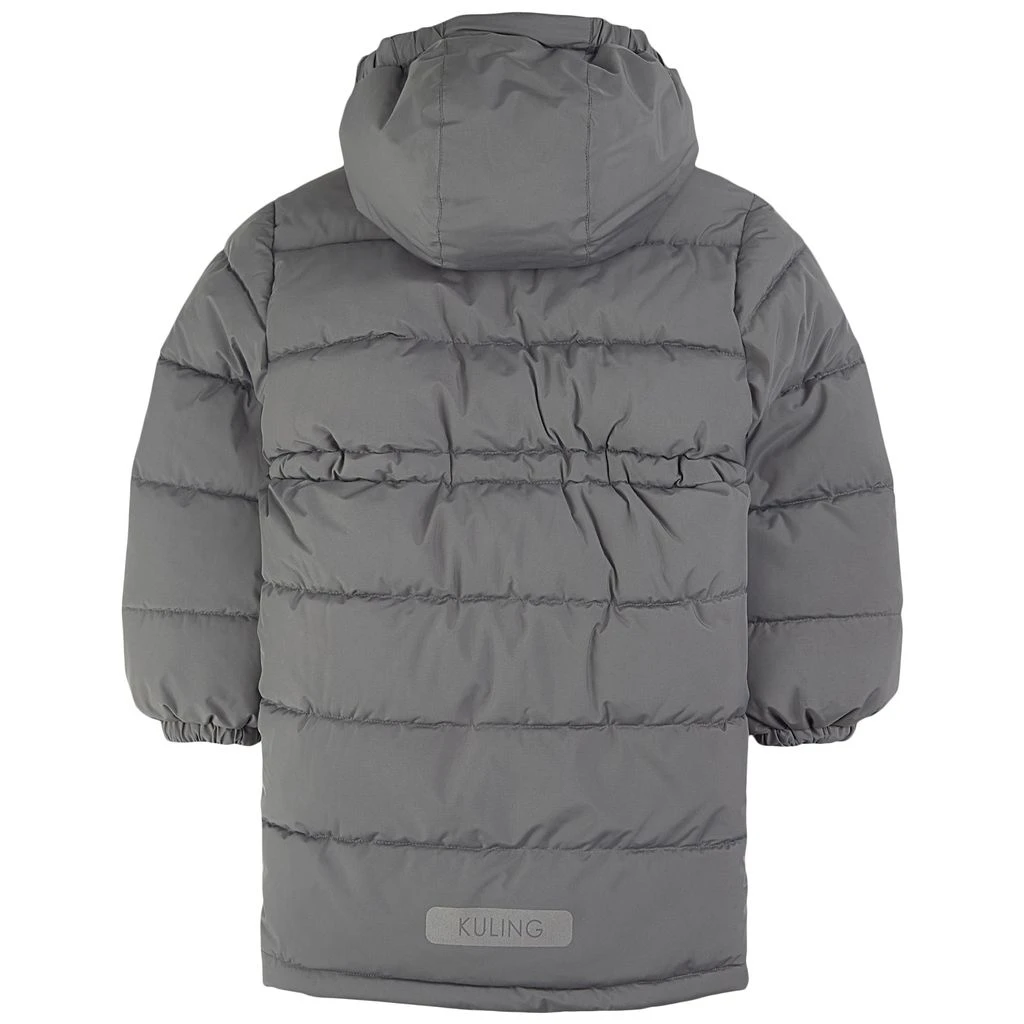 Be warm and comfy on winter adventures. Green Syracuse puffer jacket by Kuling. The jacket has a knee length design. It has warm padding, a detachable hood, a zip closure at the front, an adjustable waist, two front pockets and elasticated cuffs.