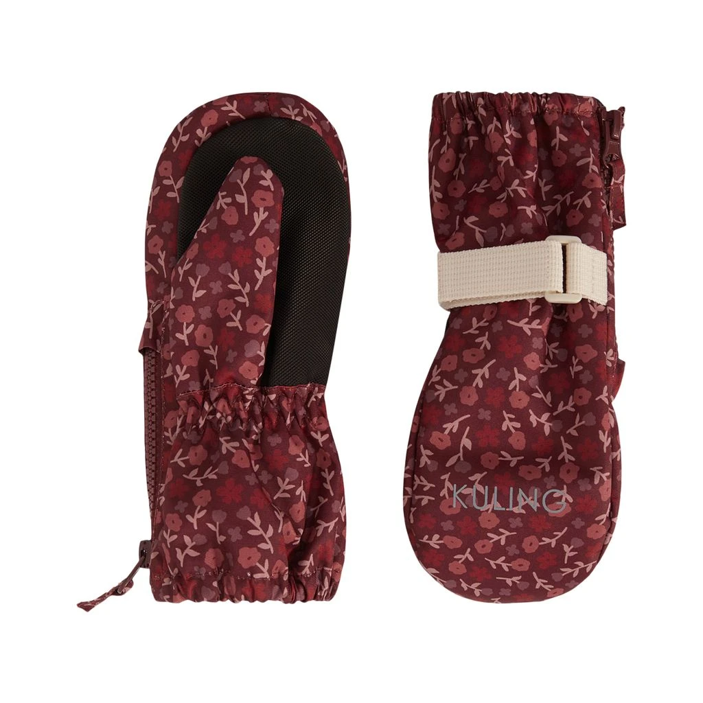 Keep little hands warm. Purple Tallinn mittens by Kuling. The mittens have taped seams. They have a fleece lining, an elasticated wrist with a velcro closure, a zip closure at the side and a reinforced palm.