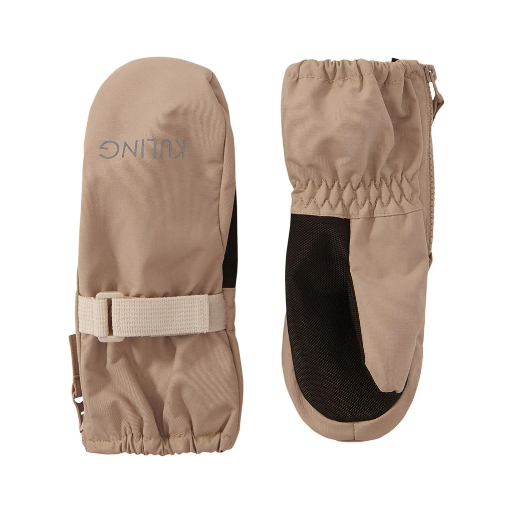 Keep little hands warm. Beige Tallinn mittens by Kuling. The mittens have taped seams. They have a fleece lining, an elasticated wrist with a velcro closure, a zip closure at the side and a reinforced palm.