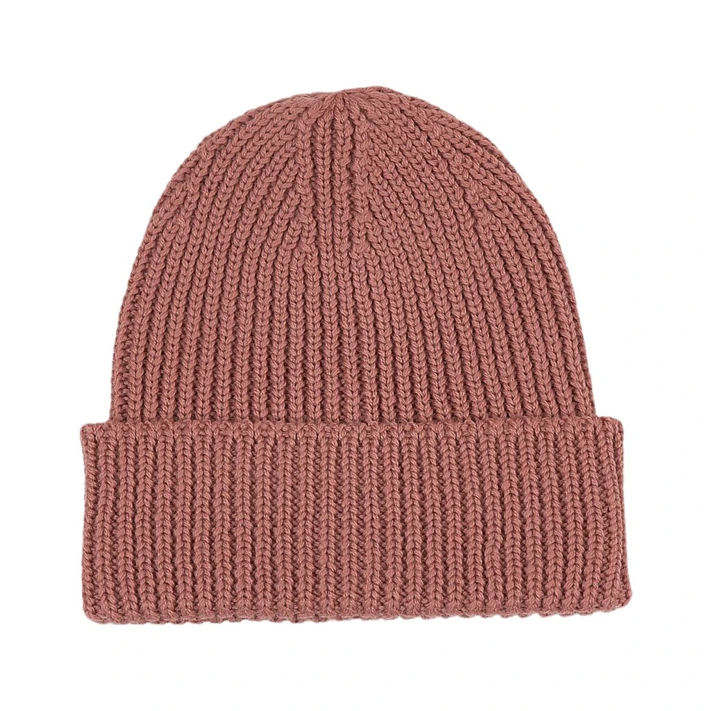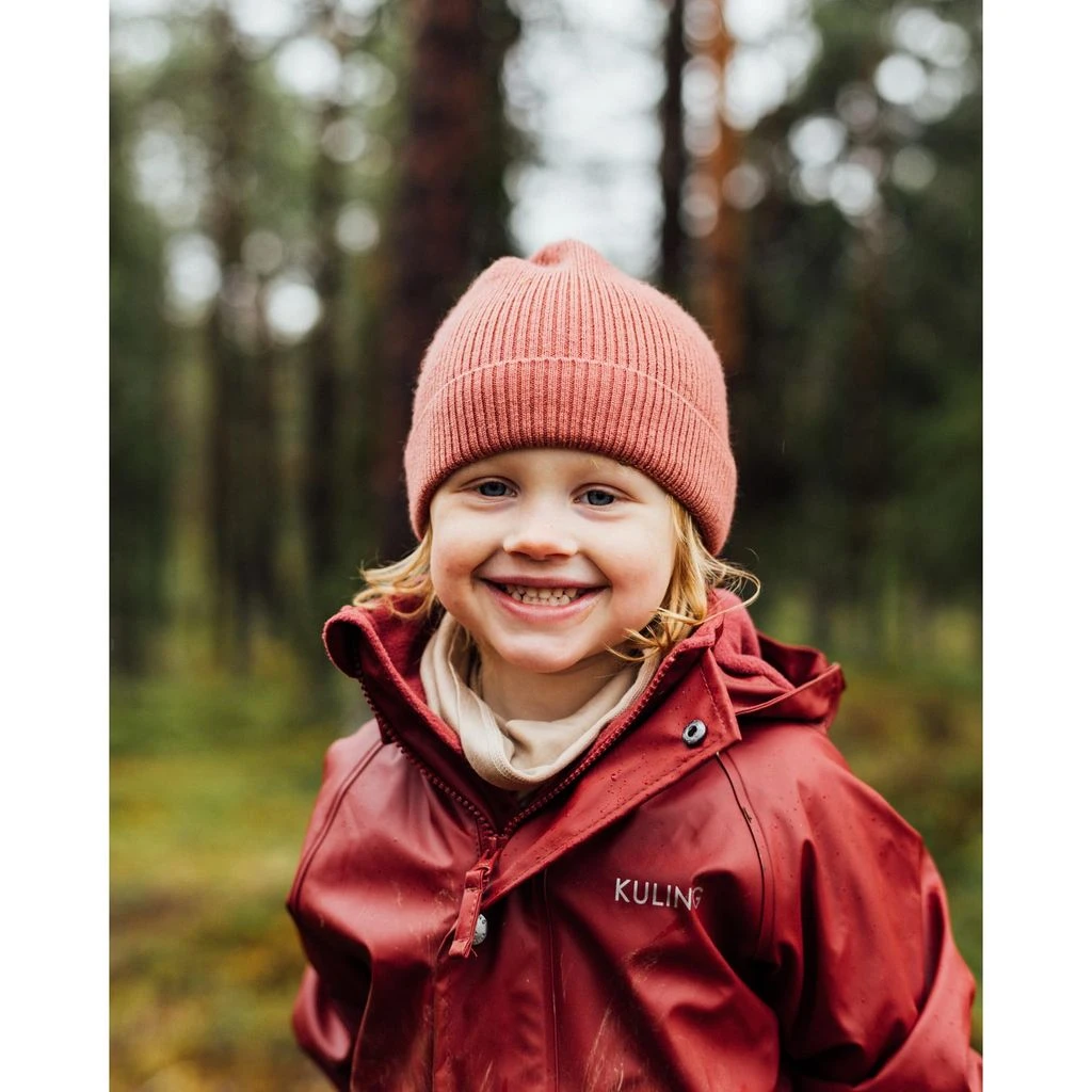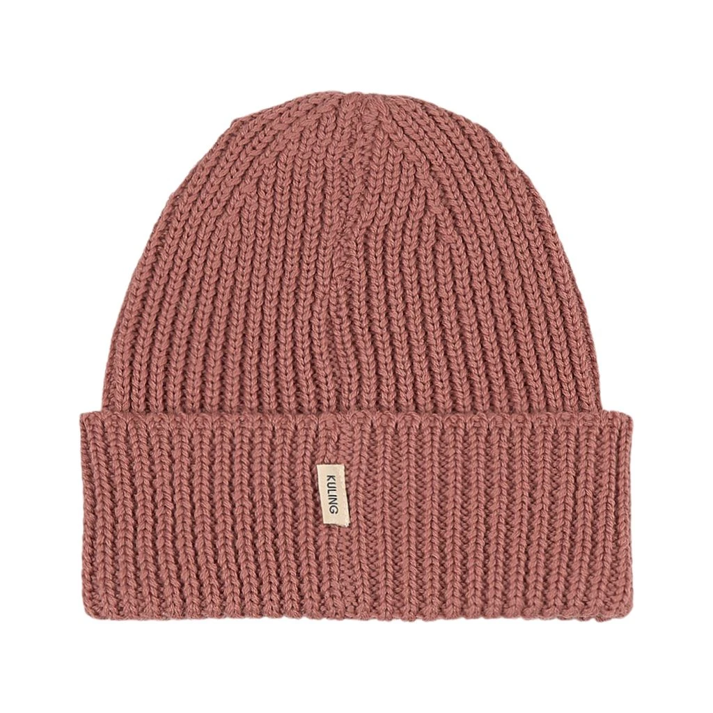 Keep little heads warm. Pink Umeå hat by Kuling. The hat has a rib-knit design. It has a folded hem.