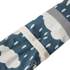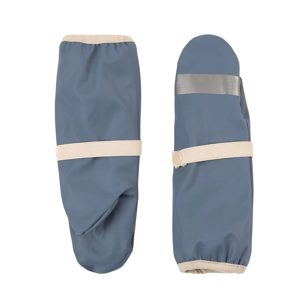 Blue Vilnius mittens by Kuling. The mittens have welded seams. They have a soft fleece lining, an elasticated strap with snap button at the wrist, elasticated cuffs and reflective details for visibility.