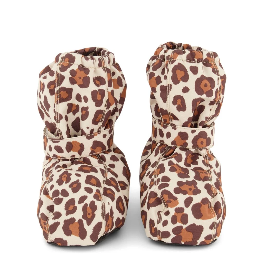 Keep little feet warm. Beige Yellowstone booties by Kuling. The booties have taped seams. They have a soft fleece lining, elasticated cuffs, a velcro closure at the ankle and soles with non-slip details.